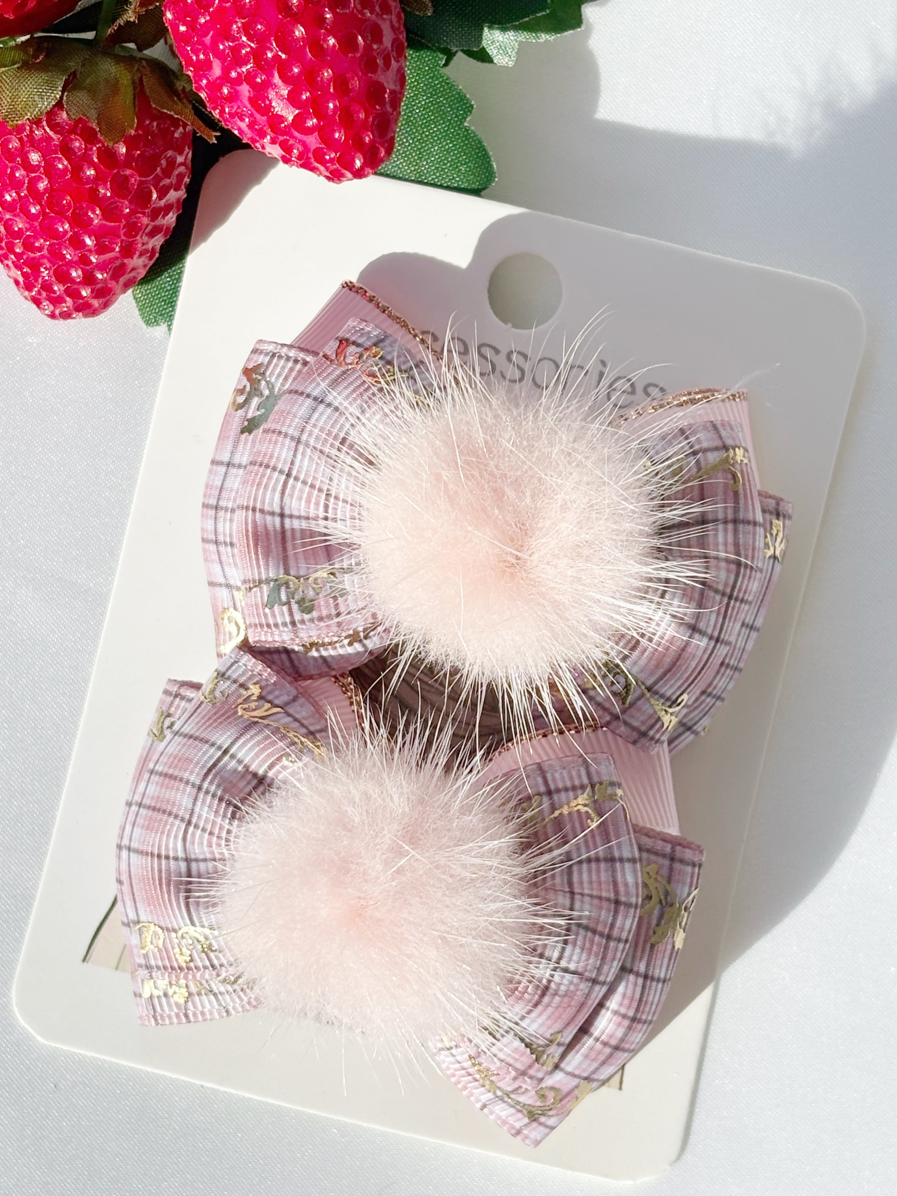 BLUE ROSE たまおwithぼく C-54 ピンクチェック ファー付き ヘアクリップ