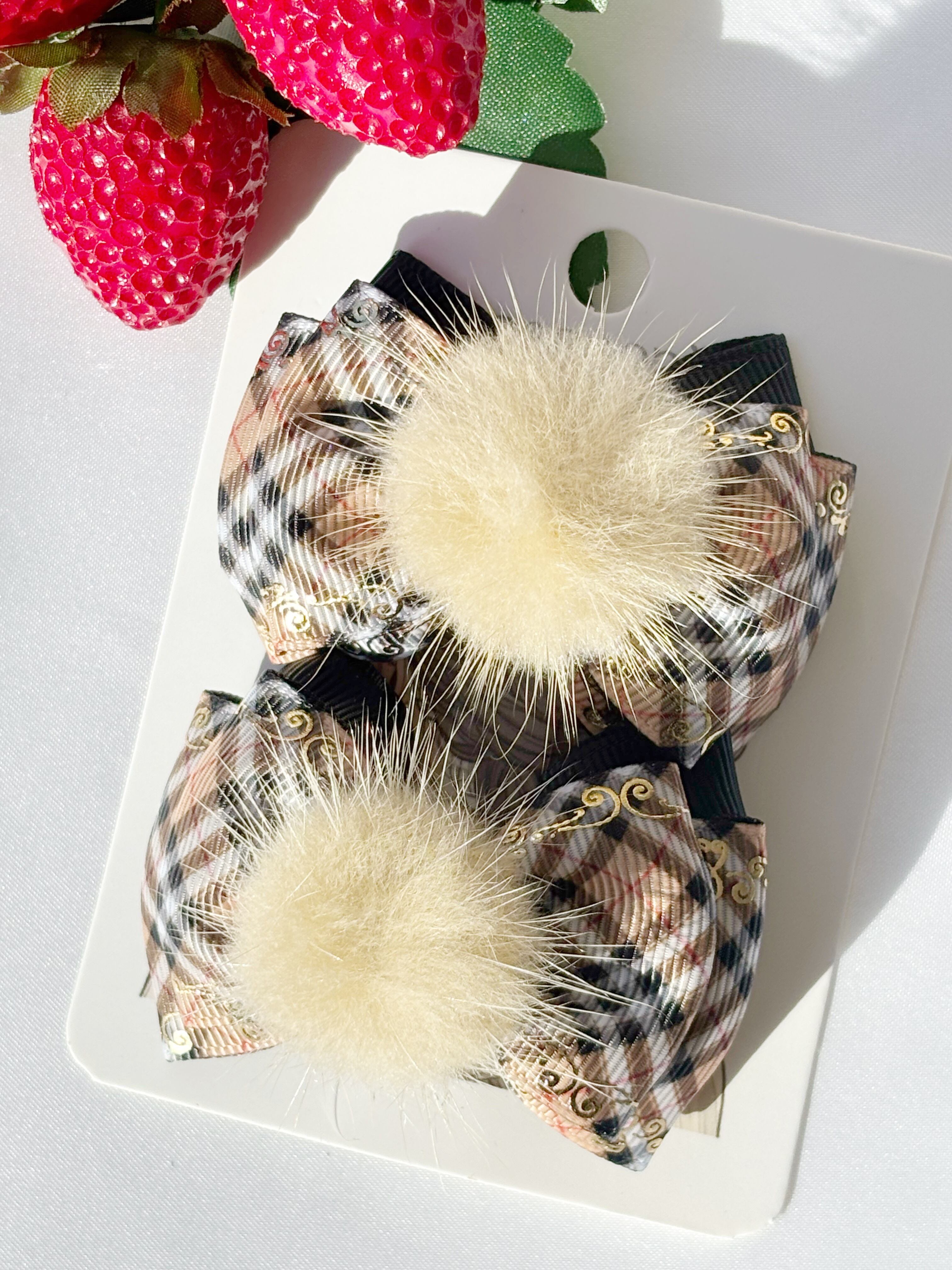 BLUE ROSE たまおwithぼく C-55 大人チェック ファー付き ヘアクリップ