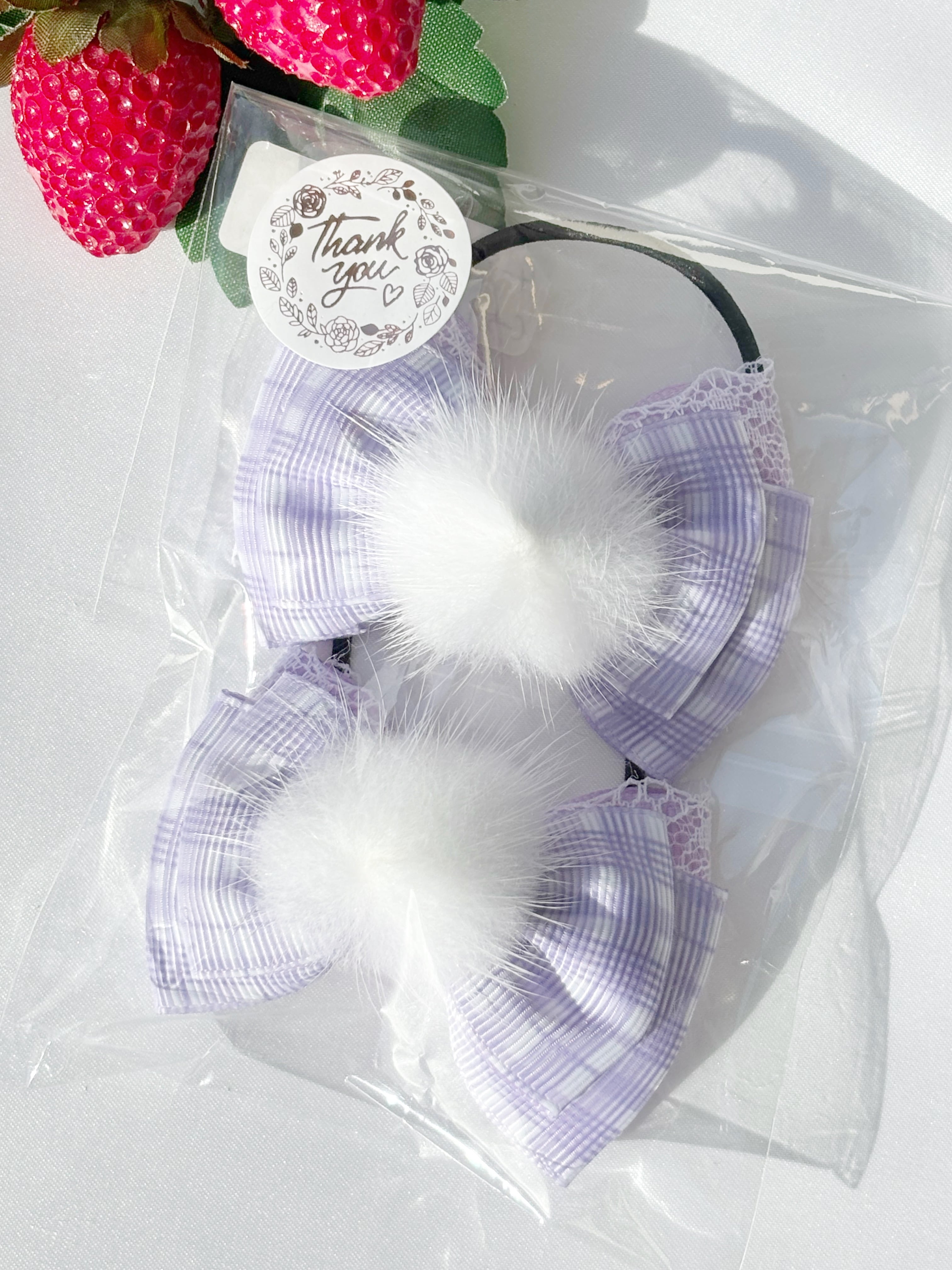 BLUE ROSE たまおwithぼく C-58 パープルチェック ファー付き ツインリボン