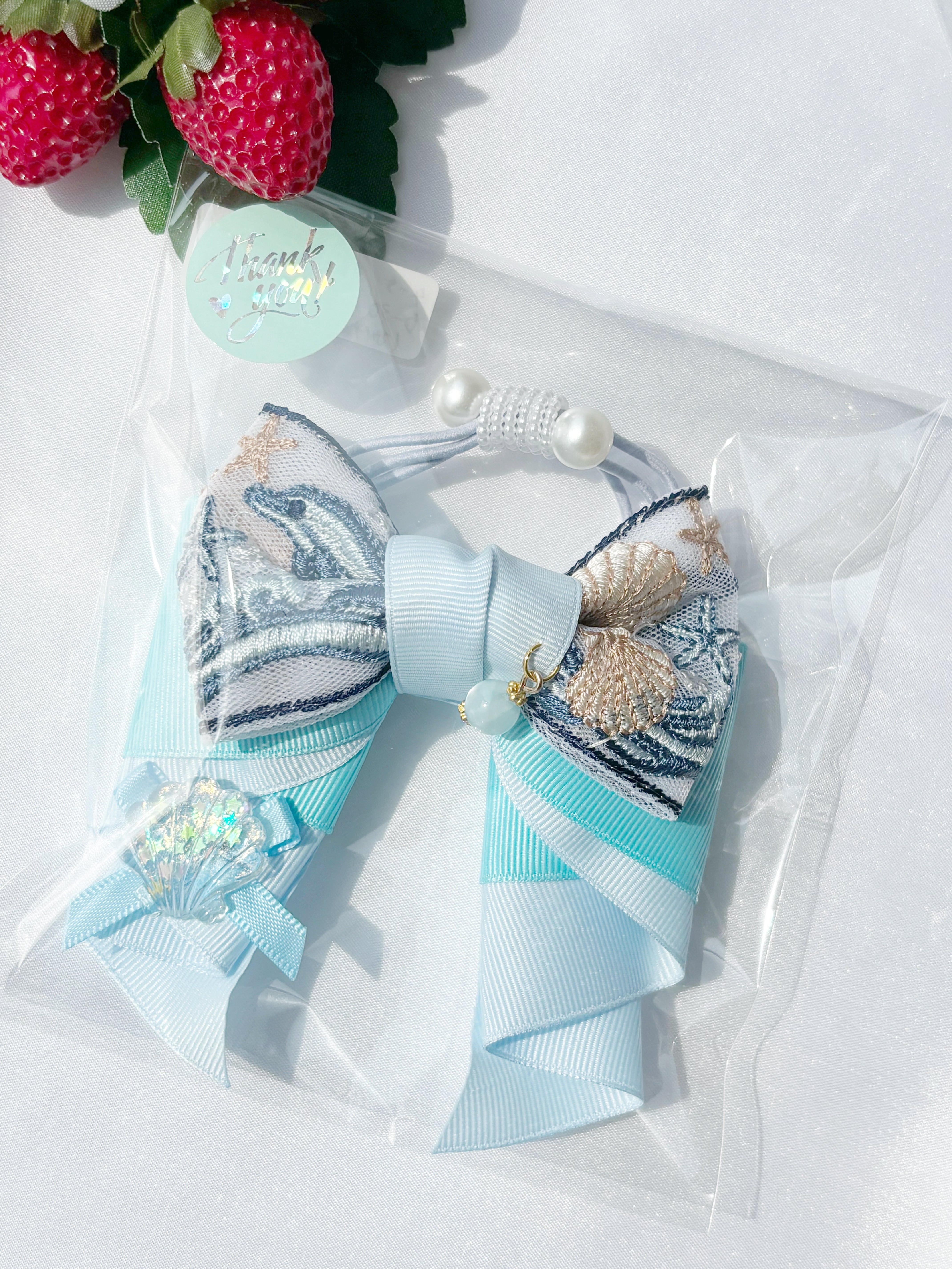 BLUE ROSE たまおwithぼく D-30 イルカ カノンリボン (スカイブルー×ライトブルー)
